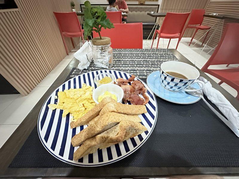 トースト+スクランブルエッグ+ベーコン+ホットコーヒーをチョイス