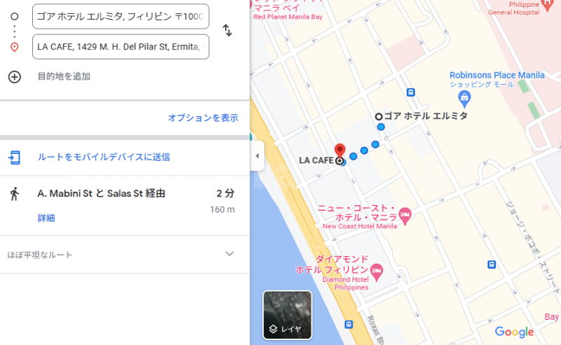さらに近くには、セブンイレブン、レストラン、両替所、ロビンソンモール、マニラ湾もあり昼間の時間つぶしにも便利。