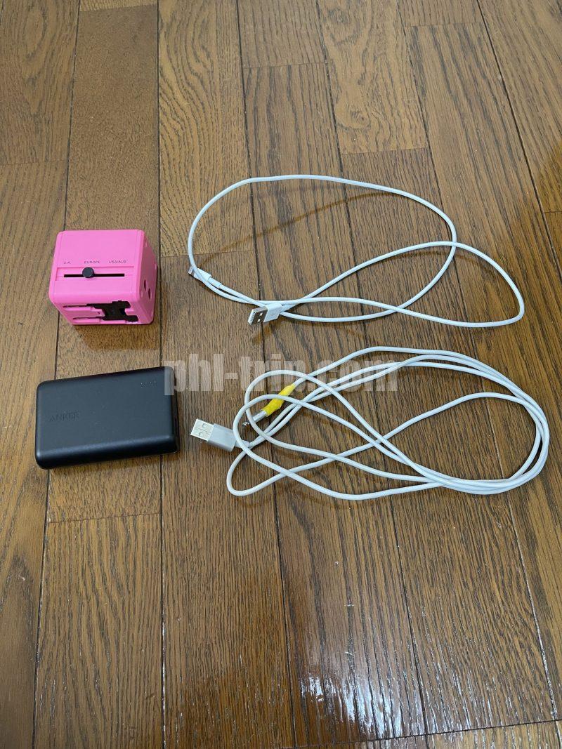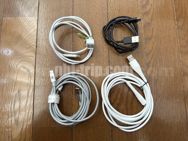 長さが違う充電コードを何種類か持って行くことをおすすめします。