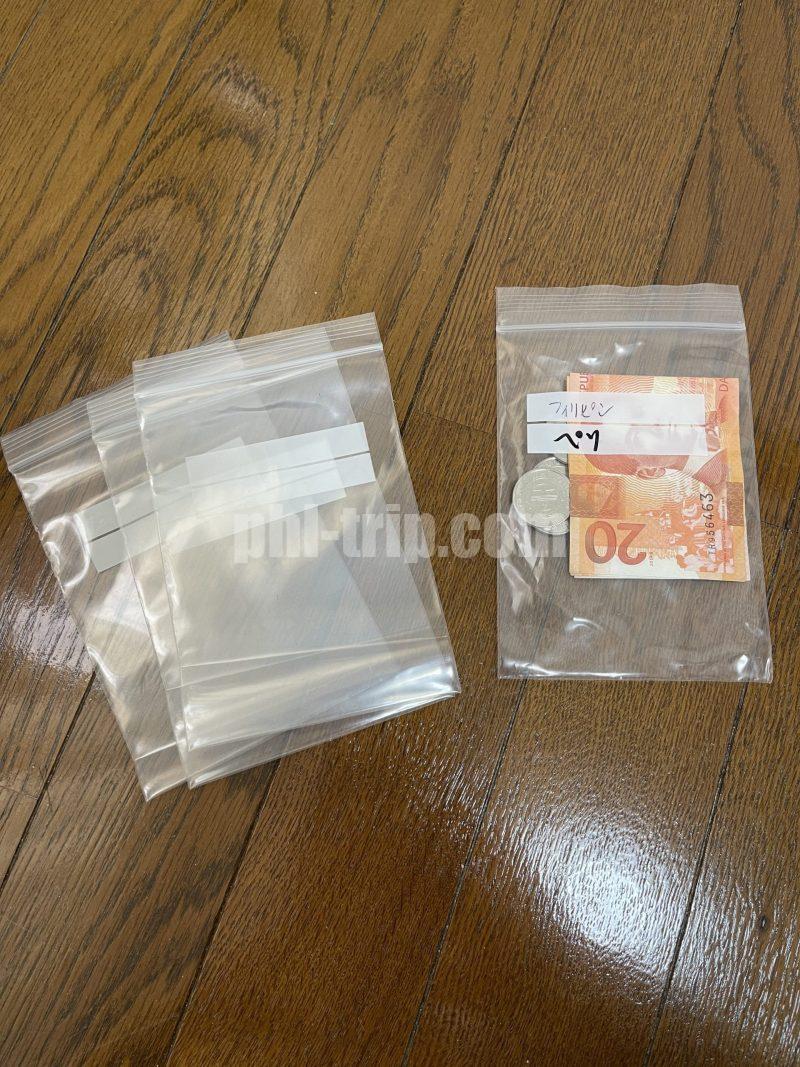 チャック付きポリ袋は、現地通貨を入れておくのに便利です。