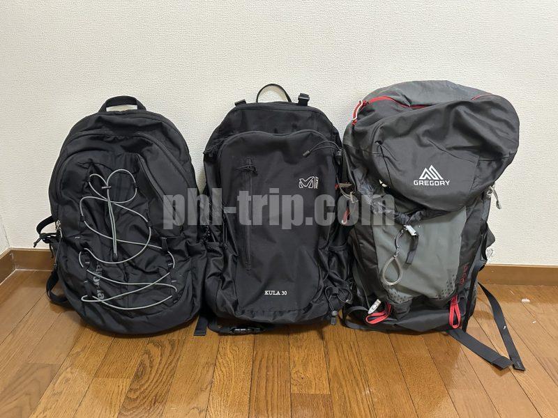 また、1人で身軽に旅をする時はバックパックをメインに準備します。