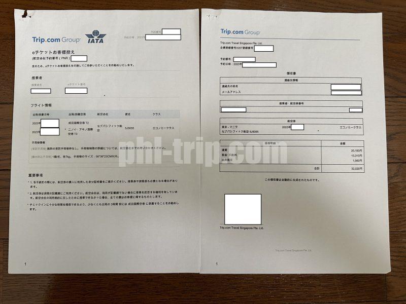 航空券(eチケットお客様控え)