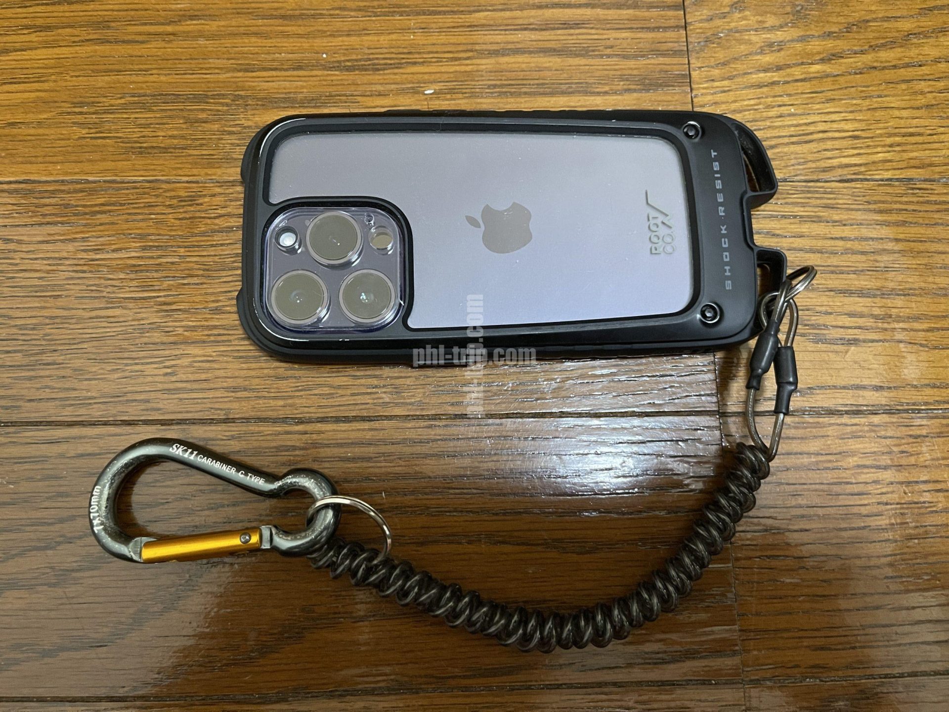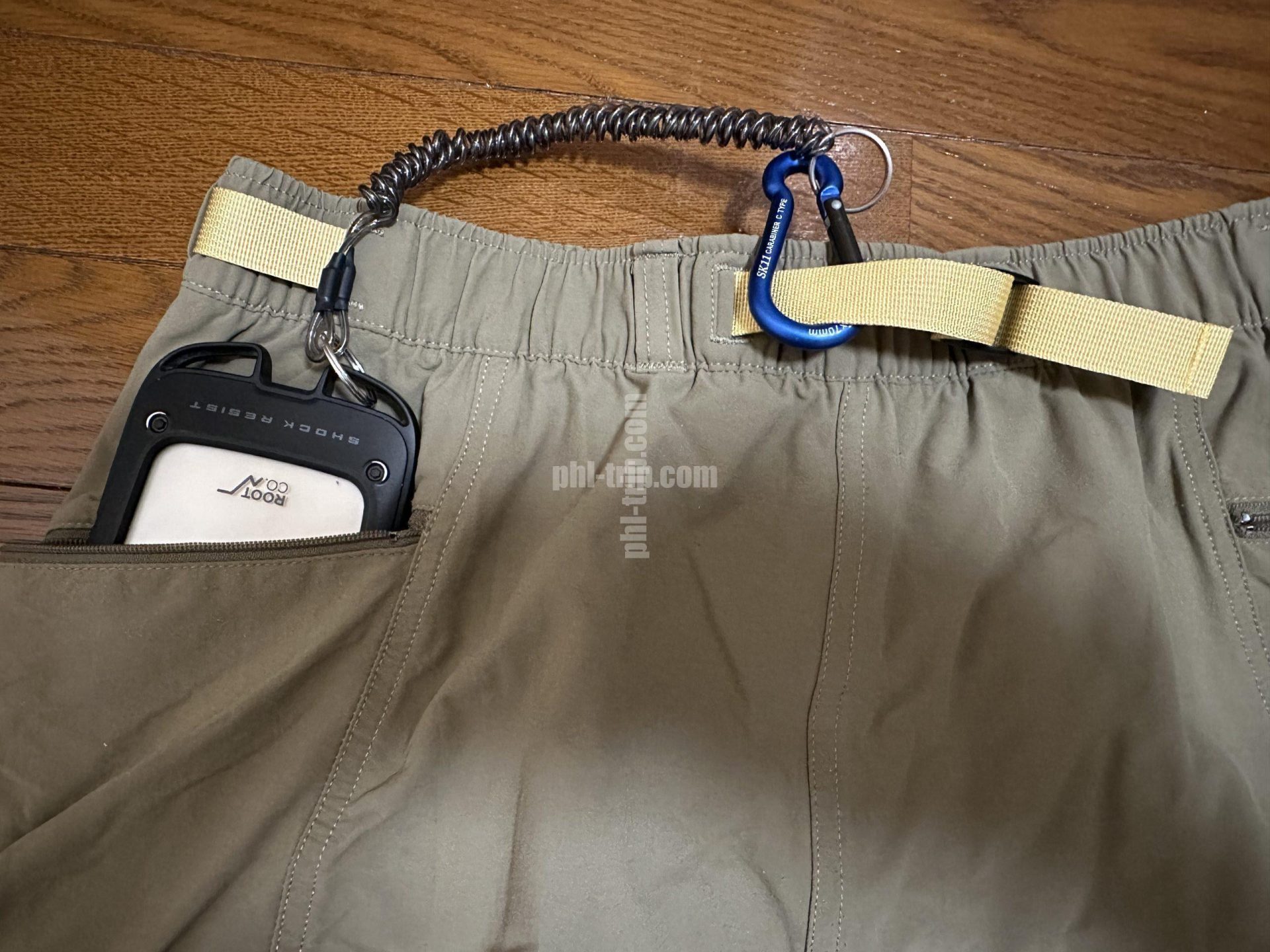 その対策方法は、上記写真のようにズボンにカラビナで固定(スパイラルコードコイルチェーン&カラビナ)することで防げます。