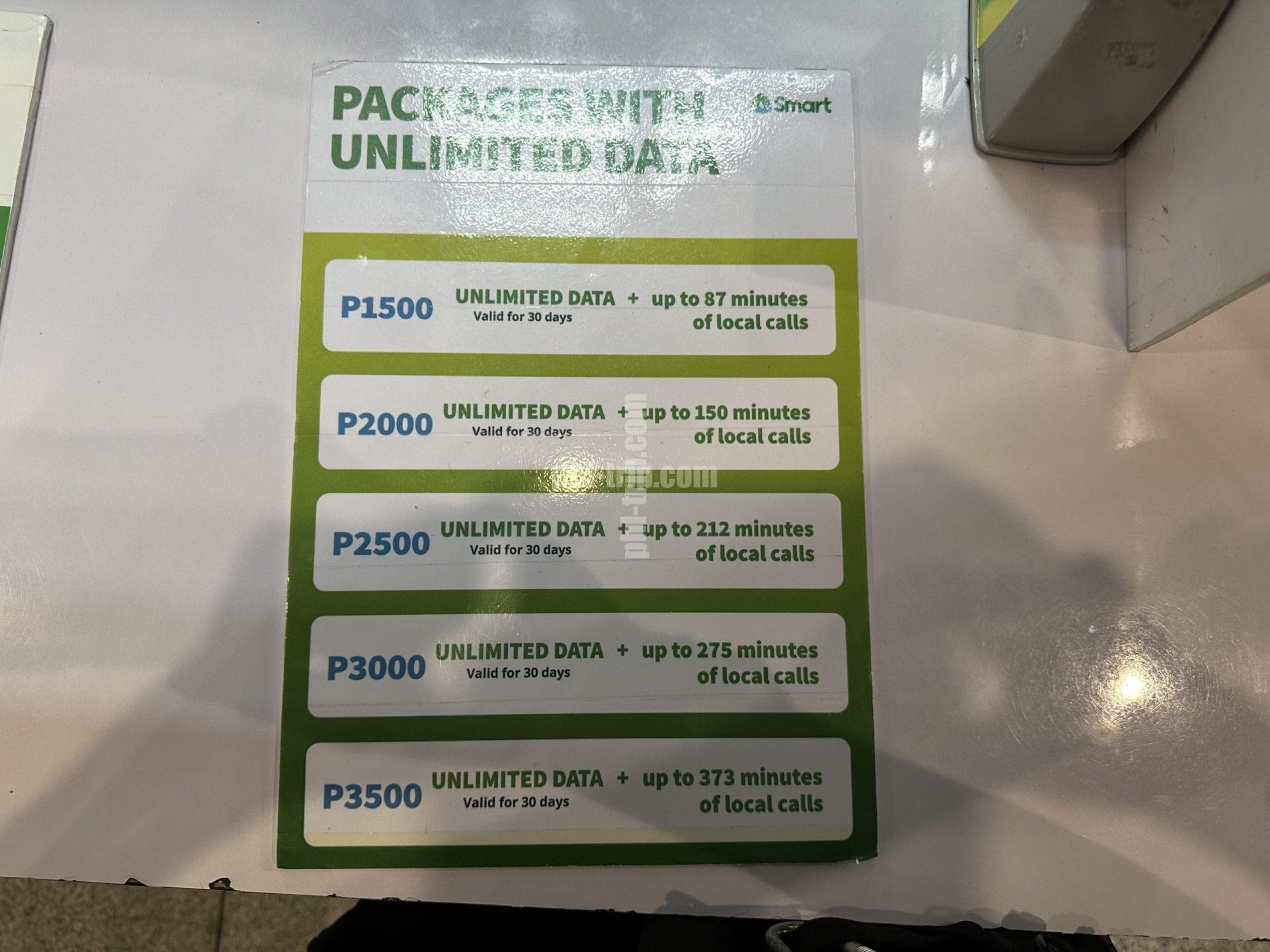 写真:phl-trip.com (マニラ・ニノイアキノ国際空港ターミナル3・SIMカード販売所のプラン表)