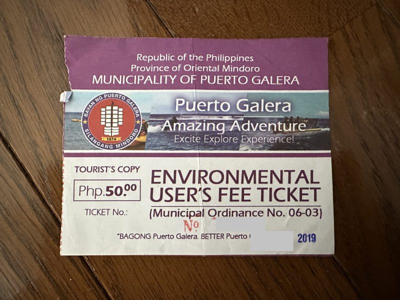 そして、入島には環境基金(入島税)・・・50ペソ(105円)を支払う必要があります。